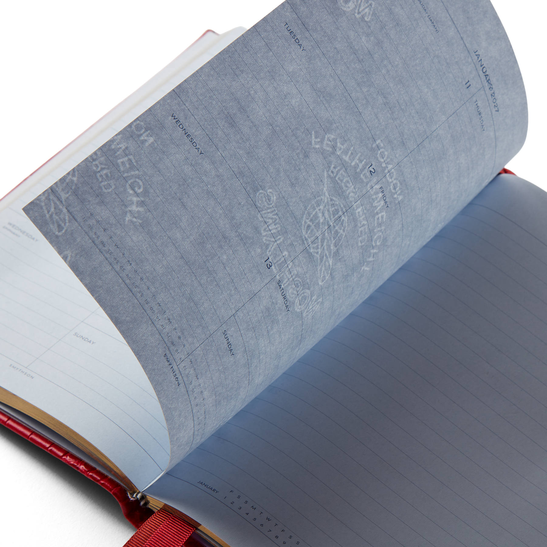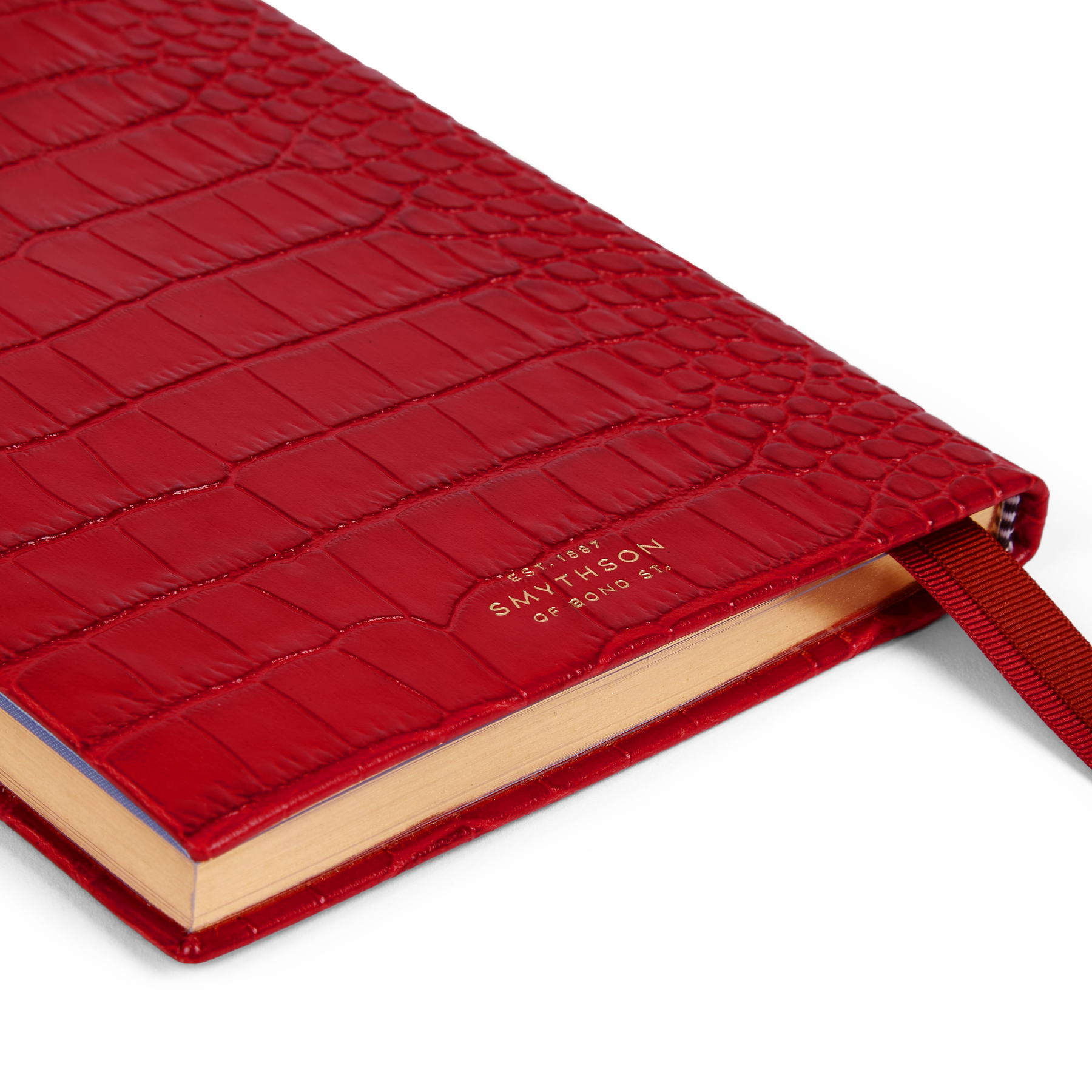 Red diary bound in crocodile-embossed calf leather