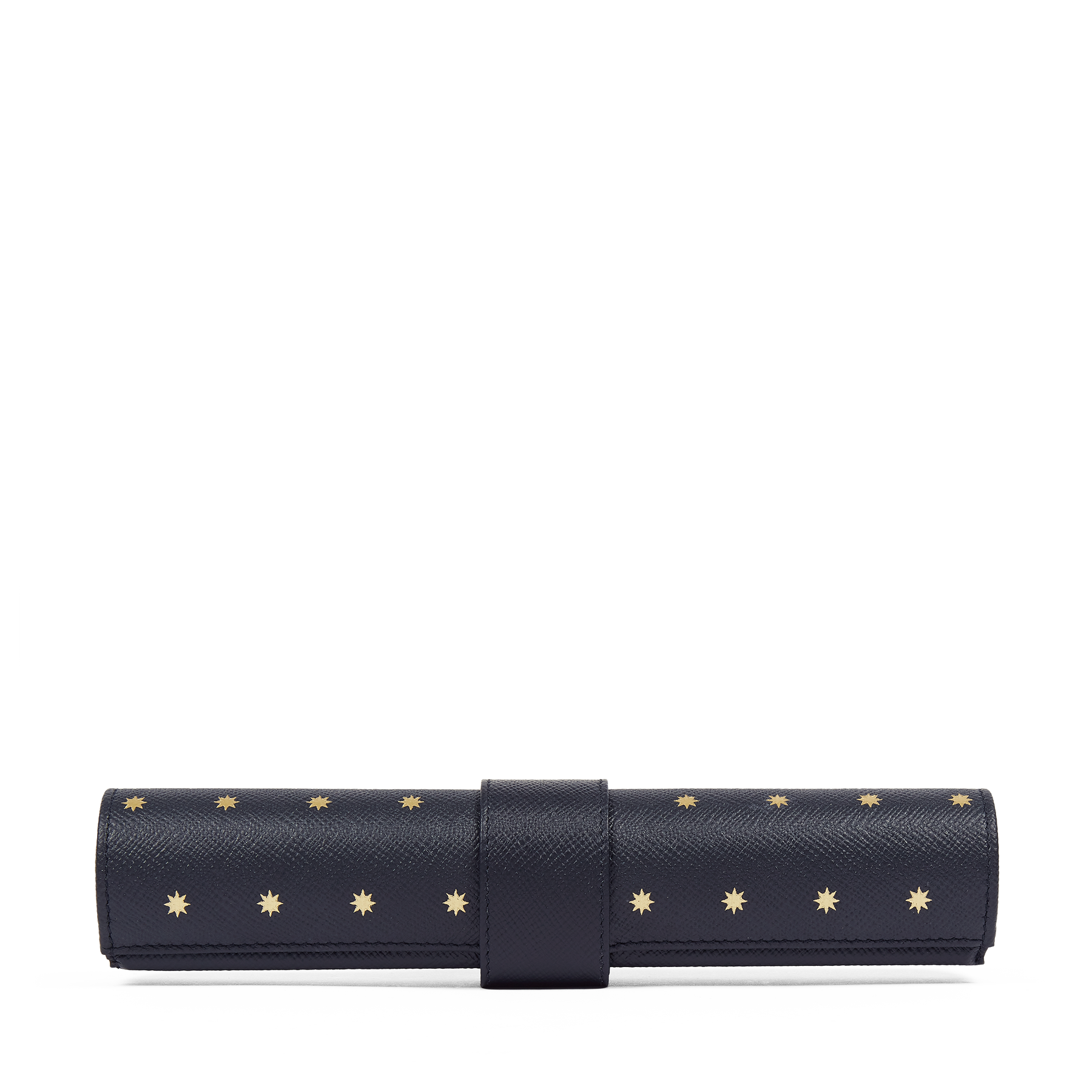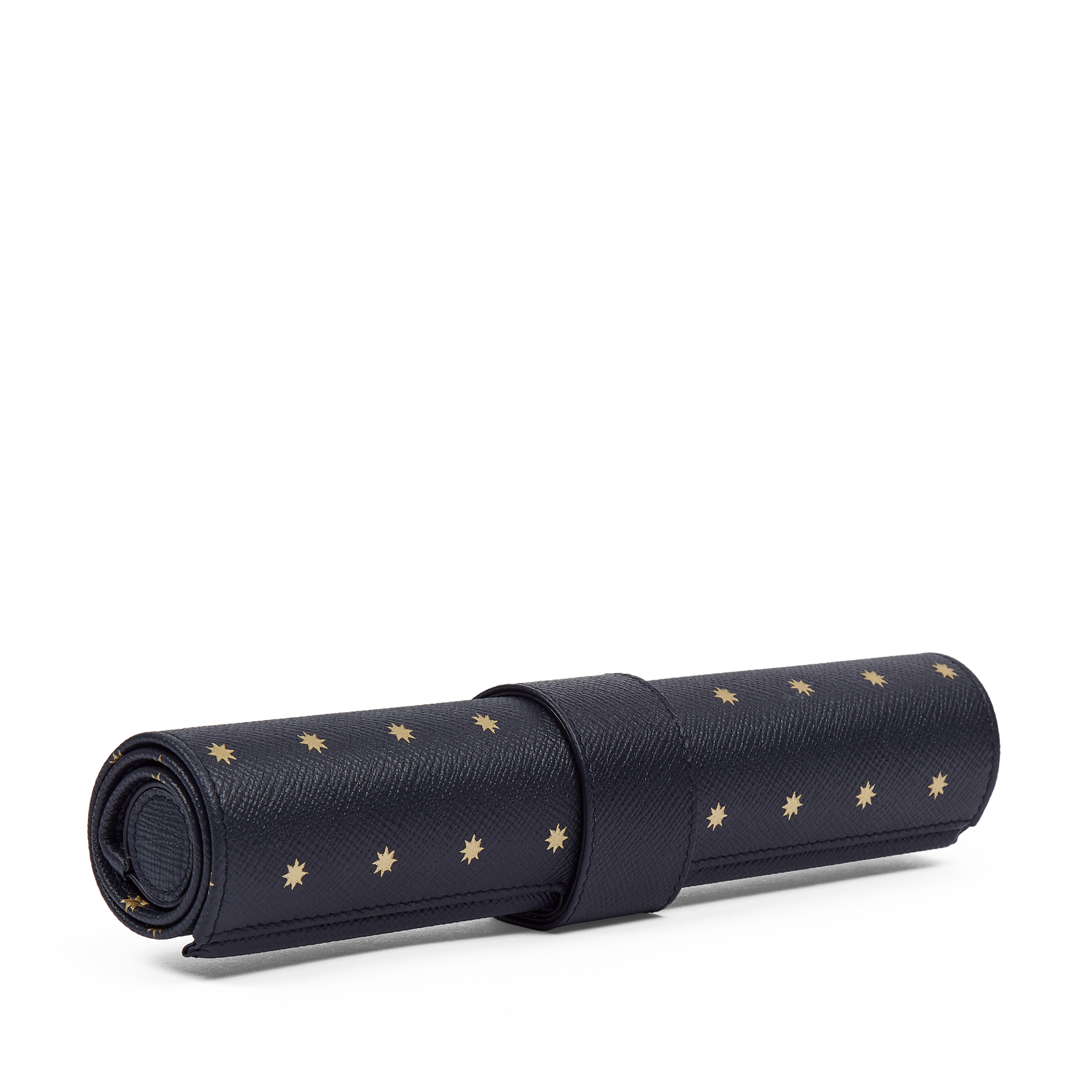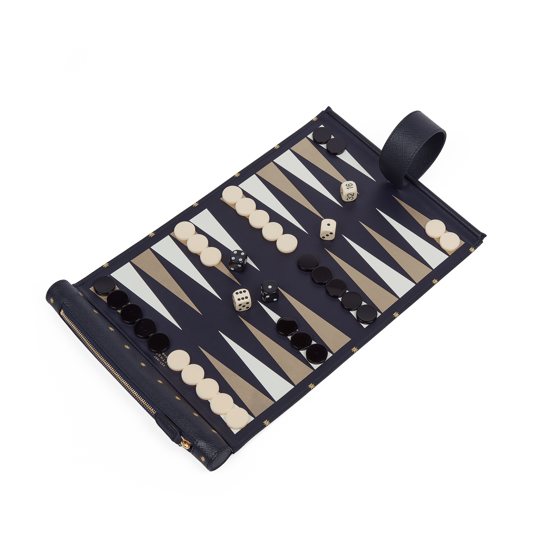 Navy travel backgammon roll in star embossed cross grain calf leather